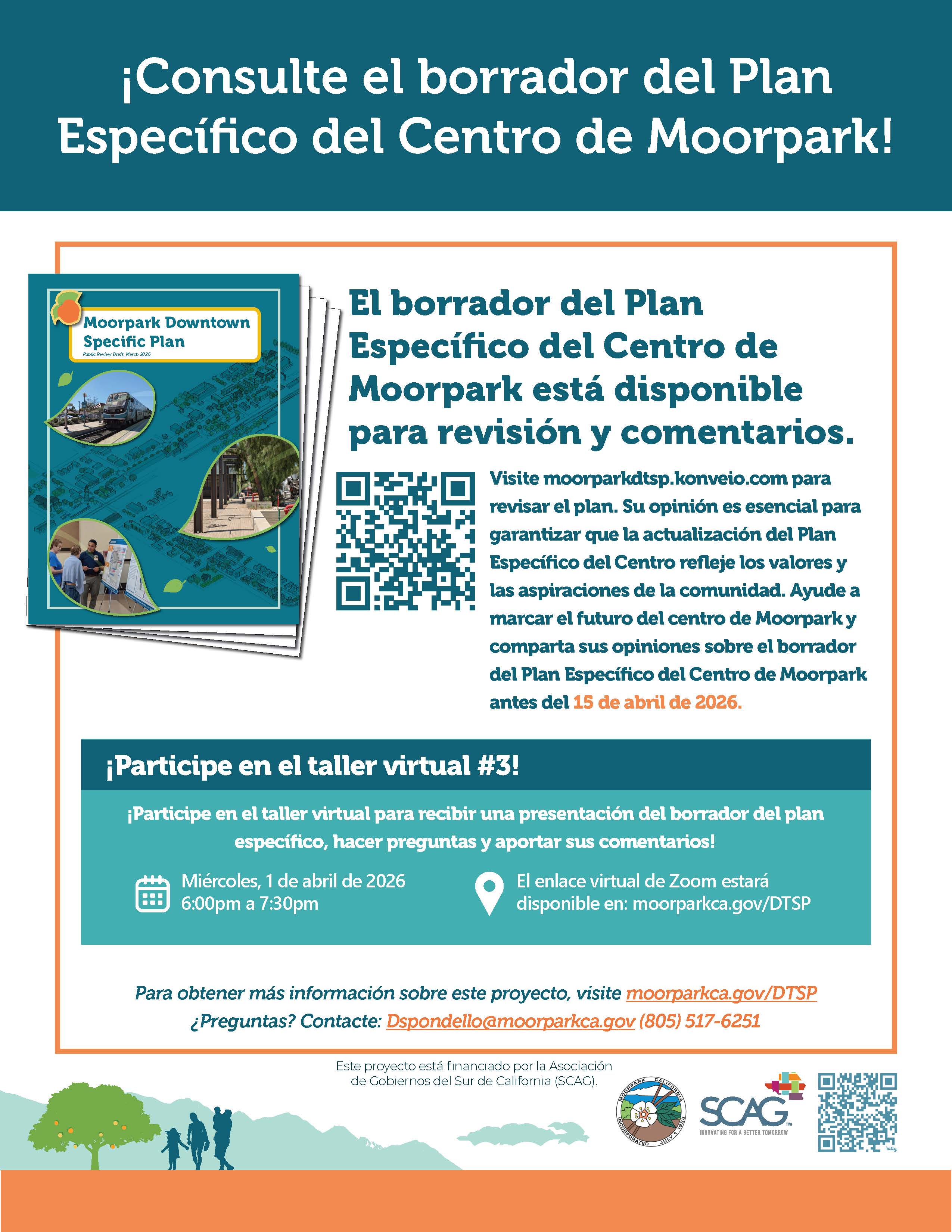 We’re updating the 1998 Downtown Specific Plan to shape a vibrant, walkable, and connected community around High Street and the Moorpark Metrolink Station. This effort will modernize zoning with a form-based code that emphasizes high-quality design, encourage housing and mixed-use projects, enhance public spaces, improve walking and transit connections, and preserve the small-town character that makes Moorpark unique. Through community workshops, public input, and clear development standards, we’re working together to create a thriving downtown for residents, businesses, and visitors. This project is funded by the Southern California Association of Governments (SCAG) through the Regional Early Action Planning Grant Program (REAP 2.0) under the Housing Infill on Public and Private Land (HIPP) Program.